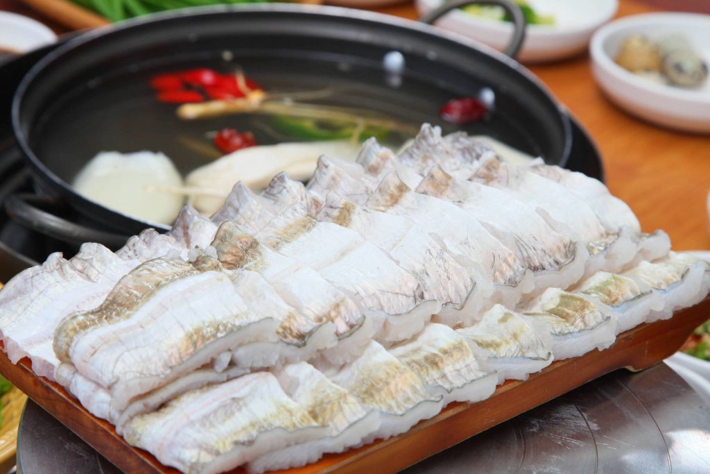 경도 선착장 주변에 위치하고 있는 경도회관은 창문 밖으로 아름답게 펼쳐진 바다를 보며 먹을 수 있어요. 5월부터 8월까지 보이게 되는 하모 유비도 있고 4월에서 12월에는 붕장어 유비끼, 1월에서 3월 사이에는 새조개 샤브샤브도 같이 먹을 수 있어요. 제일 유명한 메뉴 하모 유비끼는 촘촘하게 칼집을 넣어 주면서 갯장어와 살을 발라내고 남은 갯장어 뼈로 만들어낸 육수를 먹으러 또 가고 싶은 장소입니다.
