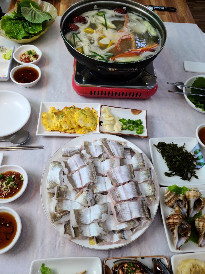 바다가 보이는 멋진 경치와 함께 맛있는 한식을 즐길 수 있는 맛집인데요. 특히나 해물전골과 생선구이가 유명해요.